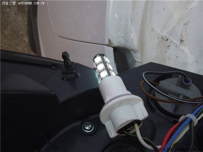 牌照灯防尘塞逆时针方向旋转就可以拨下来了,然后同上,更换LED灯。