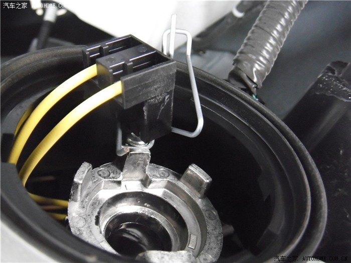 这是H7近光灯,用弹簧压住的,拨开就可以拿出灯泡