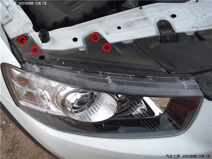 大灯总成上面的档板也要取下来,共四颗螺丝,有两颗需要套筒