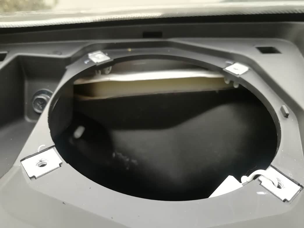 车装喇叭的位置,位于中控台,前挡风玻璃下方,拆掉喇叭后,喇叭孔甚至能看到司机刹车踏板了,意味着这里根本没法作汽车隔音,形成一个箱体是不可能的了!所以那些劝我作四门隔音的朋友们,打脸不!