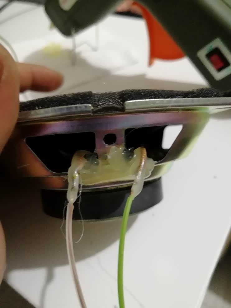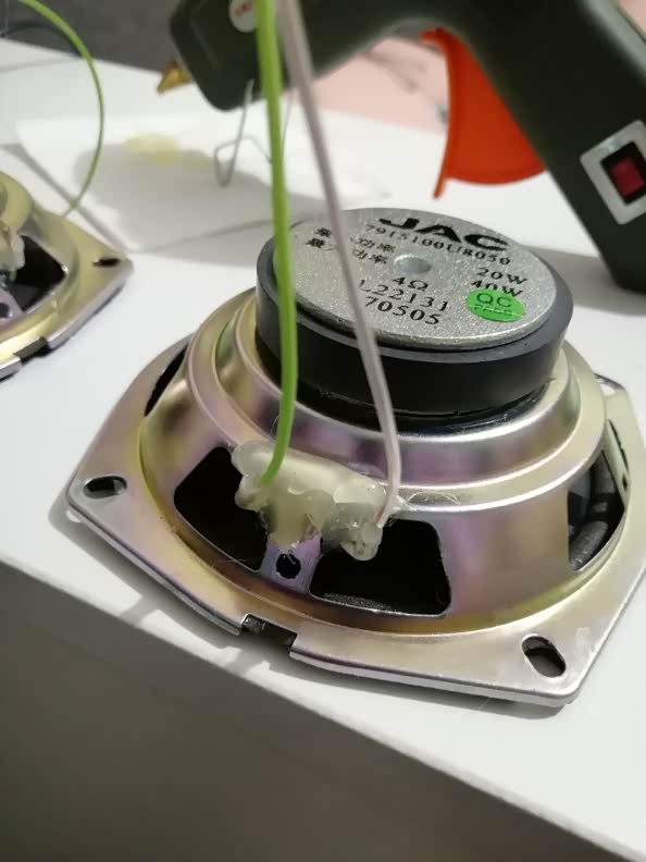 不过打胶的时候要注意,不要让喇叭线碰到喇叭边缘金属!