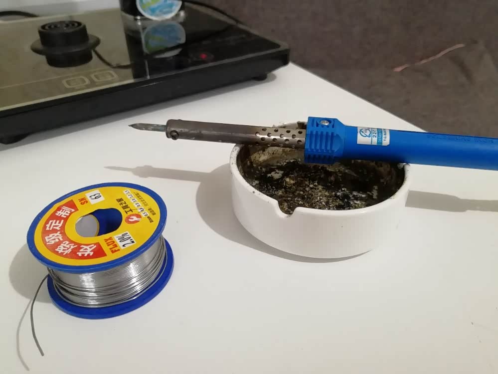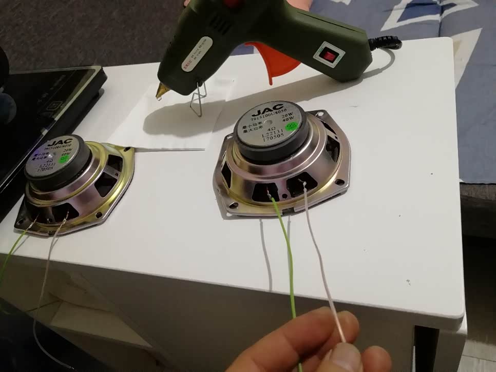 也焊接上了两根延长线,可以用作他处,但由于把,插座拆掉了,虽然延长了线,但是线不固定,容易碰上喇叭壳体的金属,造成短路!于是要用,下面的神器