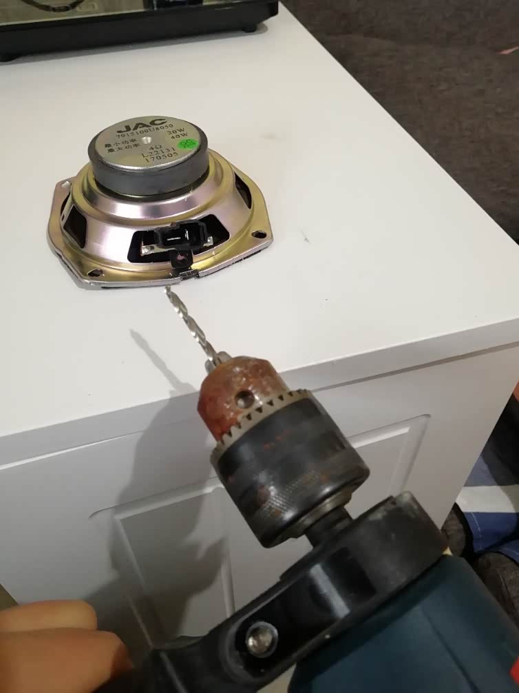 用的原来金立孔音箱壳子,装上拆机四寸喇叭正合适!这时候发现放倒家里感觉音质比车上好许多呢!