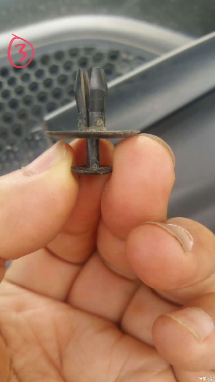 用卸掉的3个塑料钉把隔音棉固定好。插塑料钉的时候要注意捏一捏头部,保证把散头全部插入孔中,然后把拔出来的中间柱压到底,就固定好了。