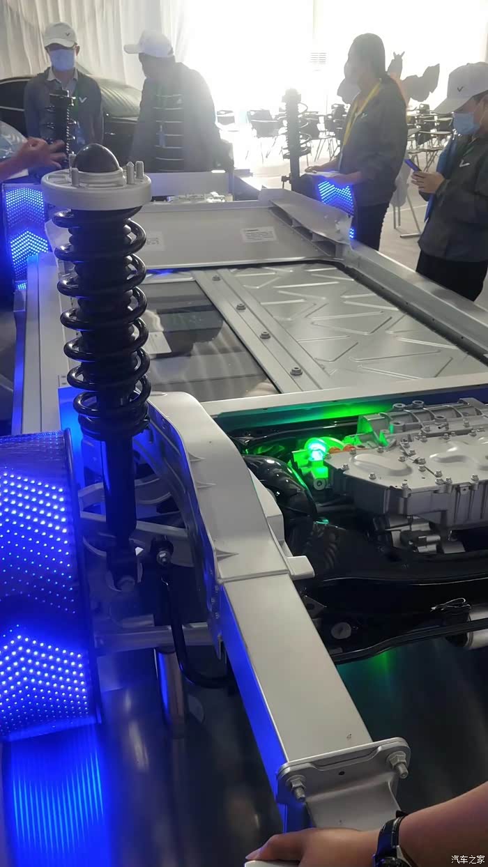 总体看,布局设计比较规整,中间没有凸起,车内空间不受影响;电池处于中心,四周有加强防护防撞梁,前后防撞也做得很好,很安全,而且重心低,行驶起来更稳定。