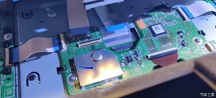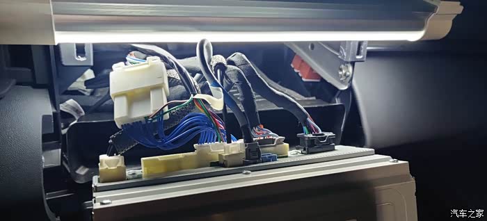 这里需要提醒,原车的排线需要插去模块那里。再从模块引出两条排线插回原车大屏上,这里要小心整理好排线的折位。