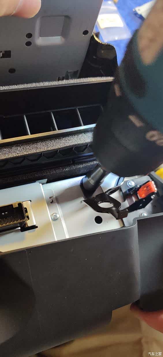 这个位置需要小心,自己DIY一定要把箭头所示的信号线拔除。不然拆不掉这个面板。