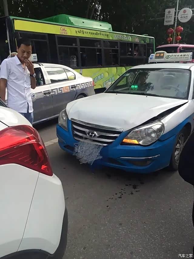在拉萨红绿灯路口被出租车追尾。昂科拉还是比较硬。