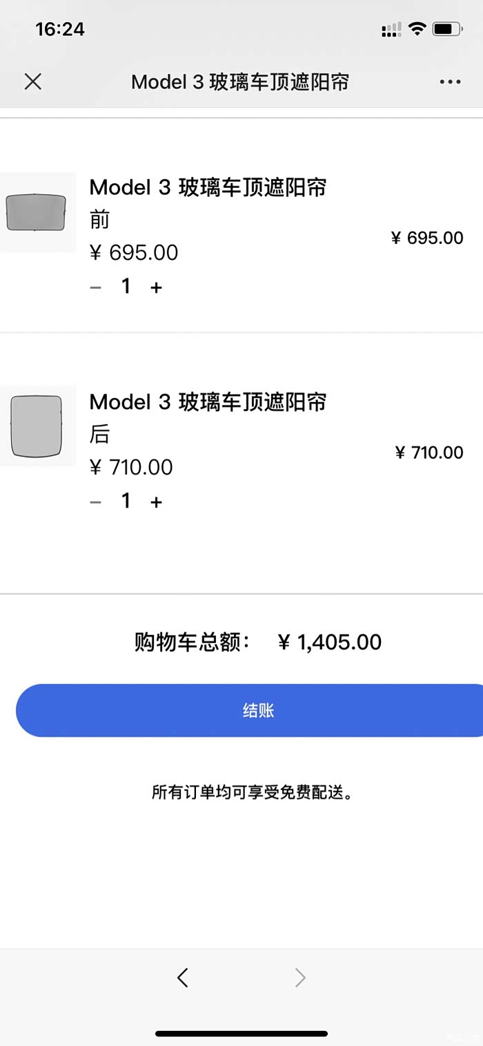 天气渐热,本着坚决不贴膜的态度,刚在特斯拉官方商店下单了原厂遮阳帘,价格小贵,但是相信和充电桩一样,一分价钱一分货,还是果断下单,等到货装上体验后,再写使用效果。