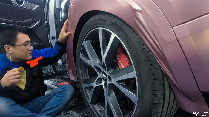 沿着轮眉与钣金的缝隙塞入改色膜即可