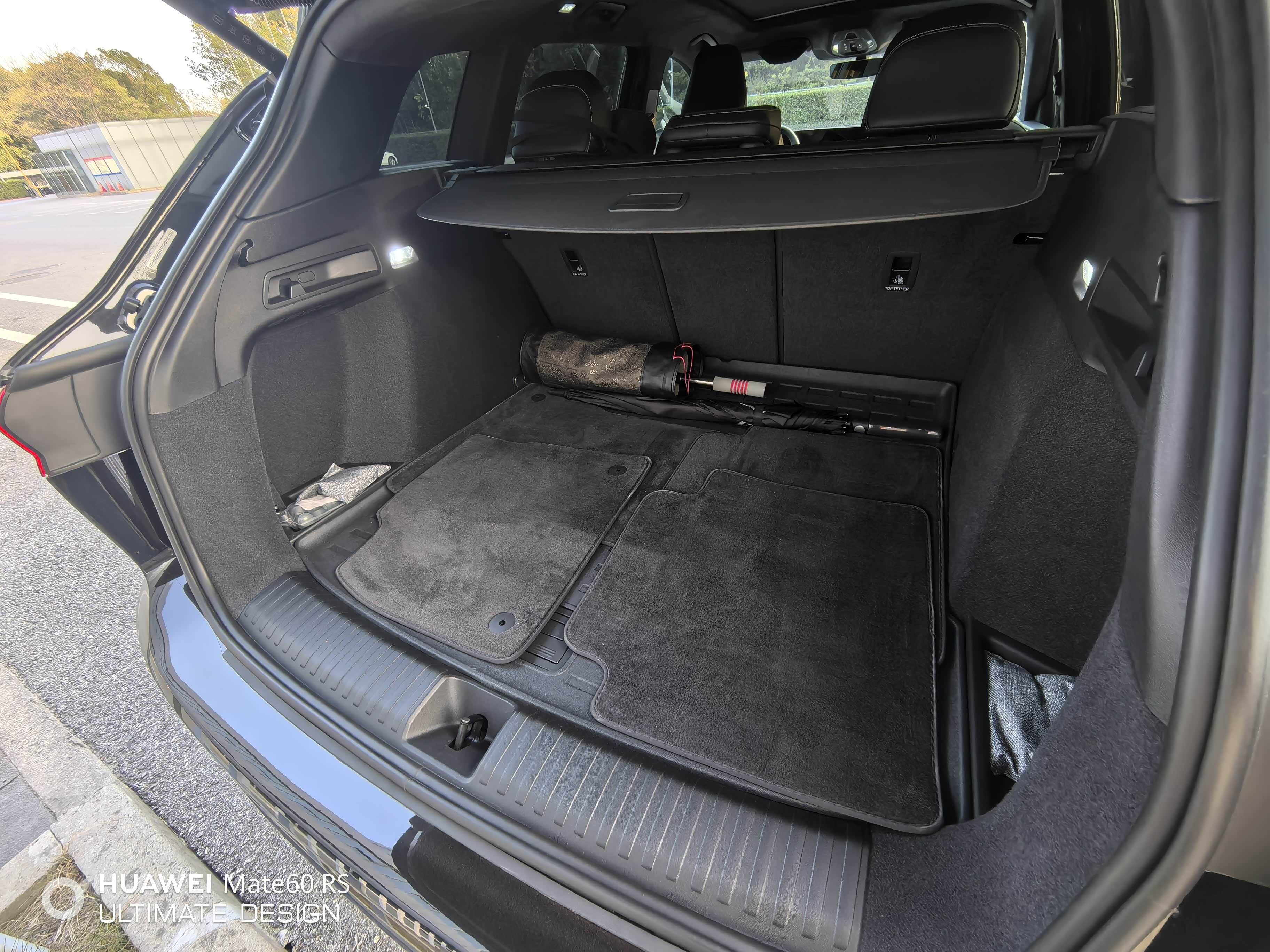 全车储物空间足够用,前备箱有64升的空间,放一些玻璃水、除尘掸子之类的清洁工具都是绰绰有余的。中央扶手打开后底下有个很深的储物空间,前侧是手机无线充电的平台,整个储物空间是全开放式的,如果想合理规划空间的就去淘一淘周边吧。后备箱空间巨大,周末去超市采购一周的食物不在话下,地台与后排座椅交界处有一点点坡度,但不影响堆放物品,左右两侧还有内凹的空间可以利用。Tips 司机可以通过左手边车门下方的按键控制后尾门的开和关,拉一下开启,关闭时需要长拉按键直到关闭,开后尾门时车辆需要挂到P档。
