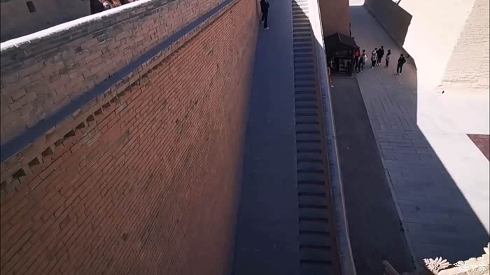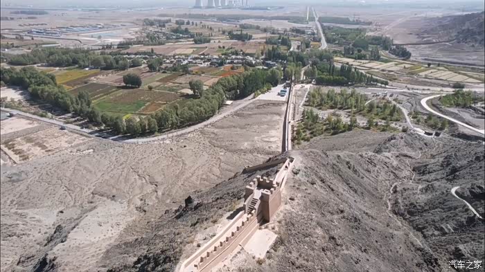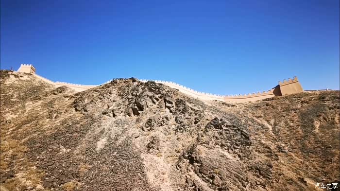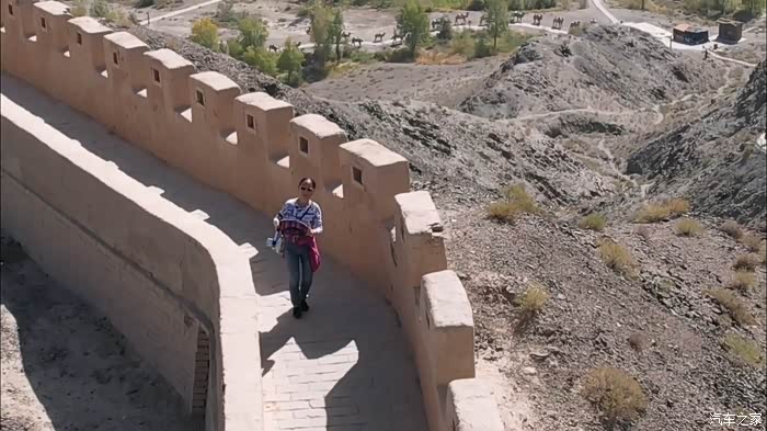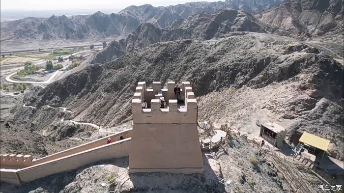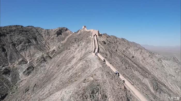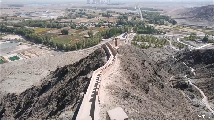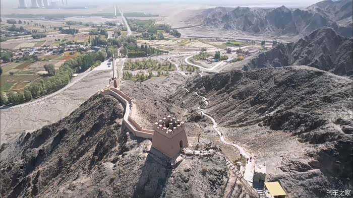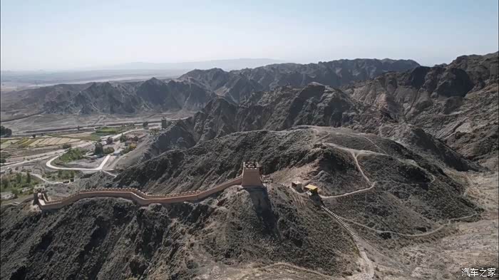 无人机越过悬臂长城的石牌标志,贴着黑山的山脊城墙越飞越高,留下我们西出边关的足迹。