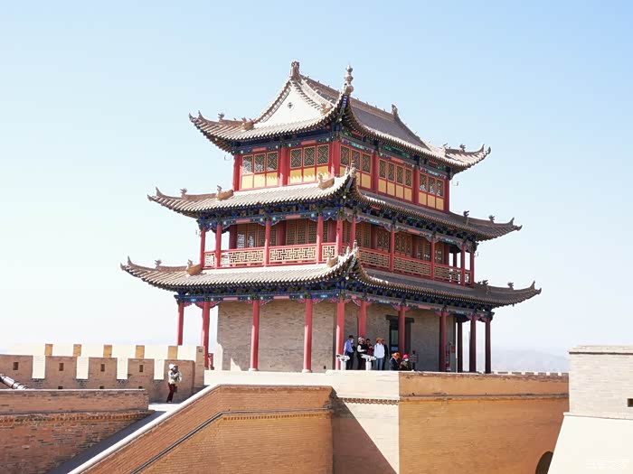 我们从东门进入,过拱门感受内城、外城、罗城、瓮城、城壕组成的重叠攻守之势;登墙楼面对戈壁荒漠,感受嘉峪关所处狭谷山隘,地势天成,攻防兼备,易守难攻。