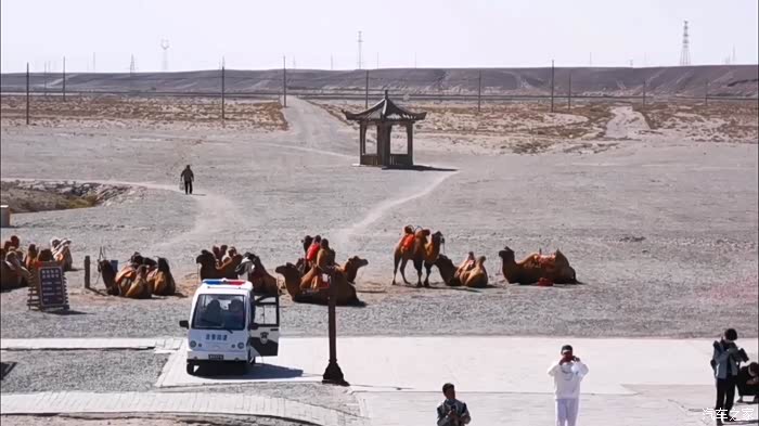 我们从北面乘坐电饼车驶入,张望四周,平坦的沙粒地显得格外荒芜。