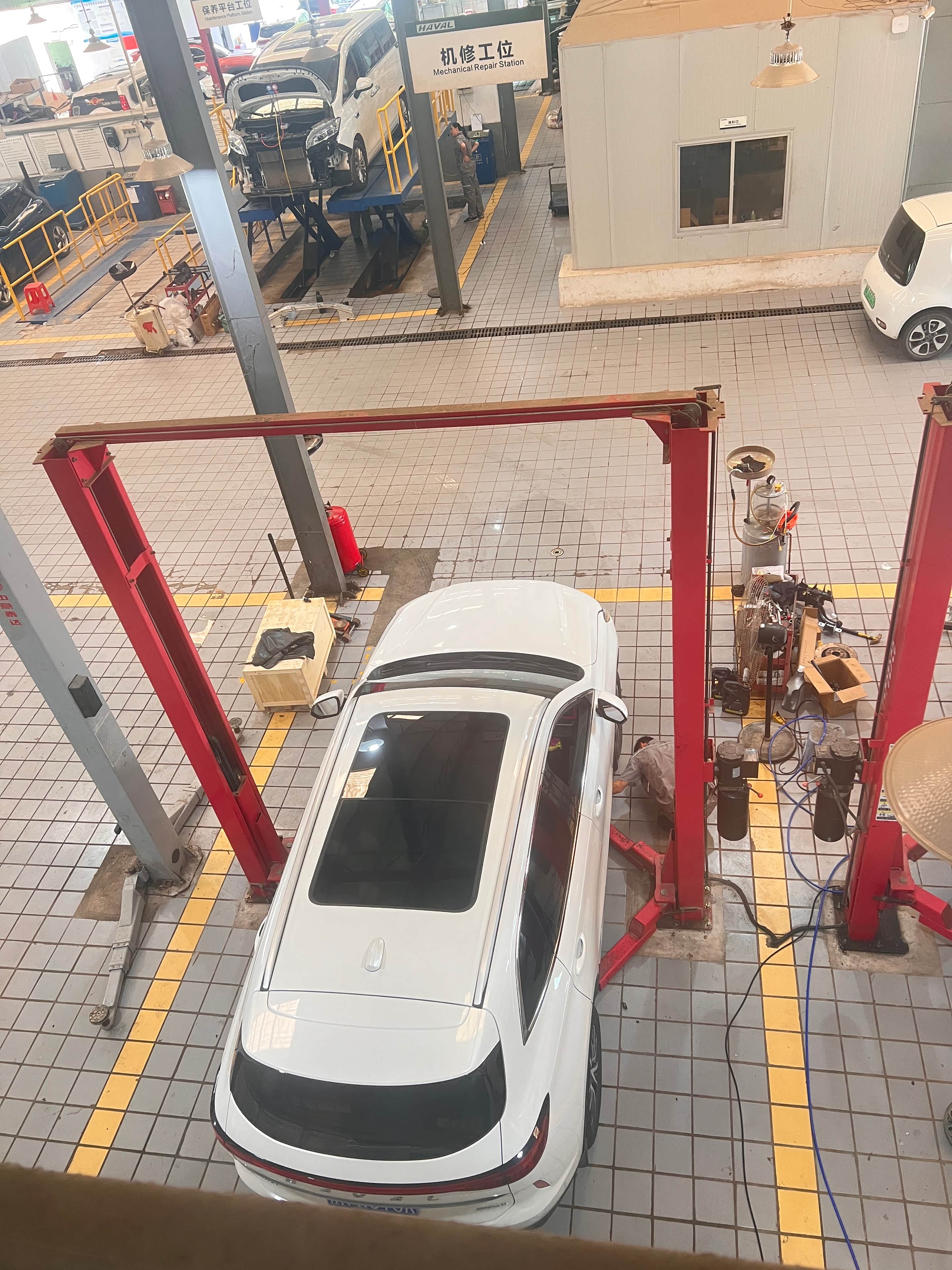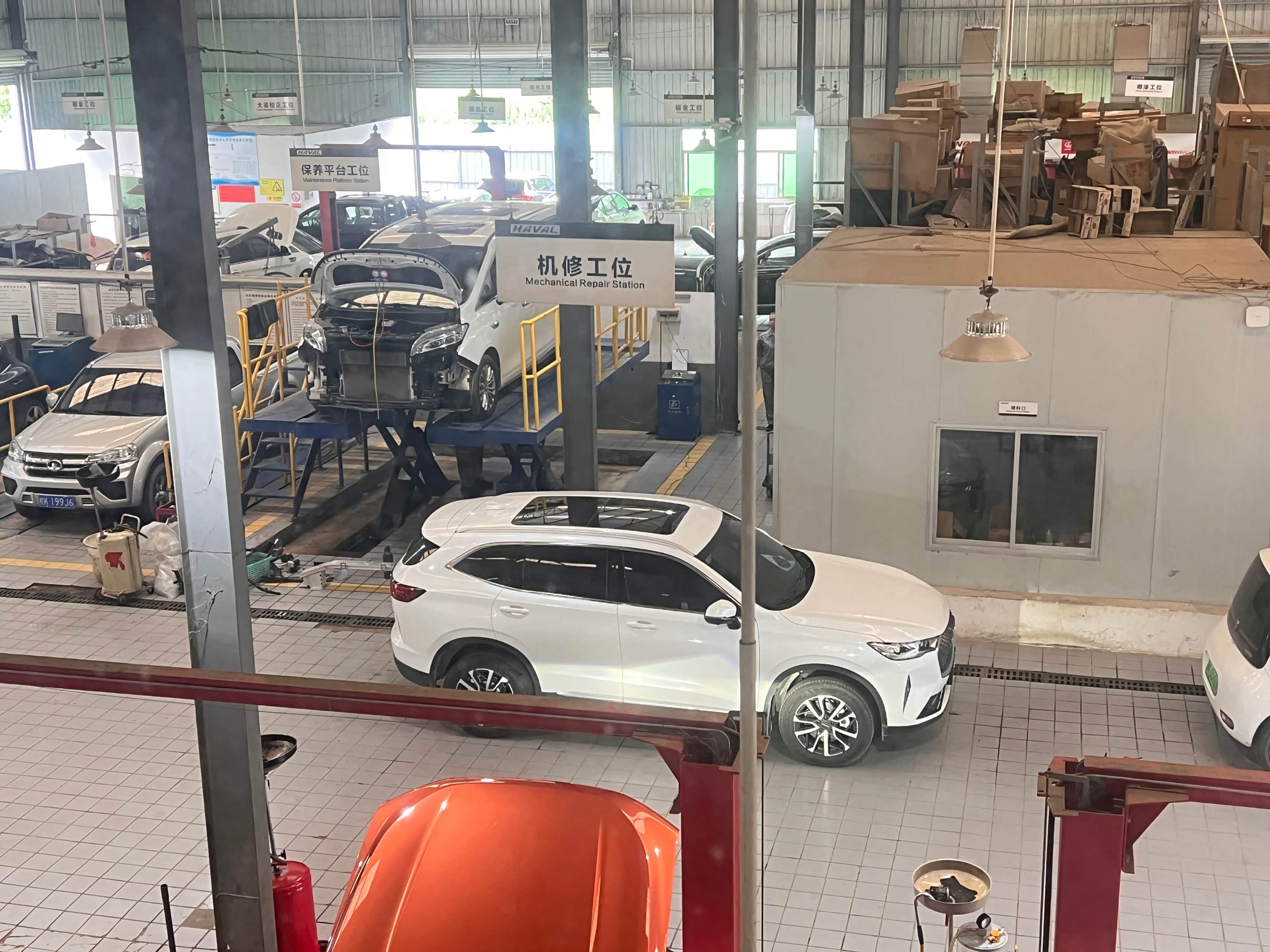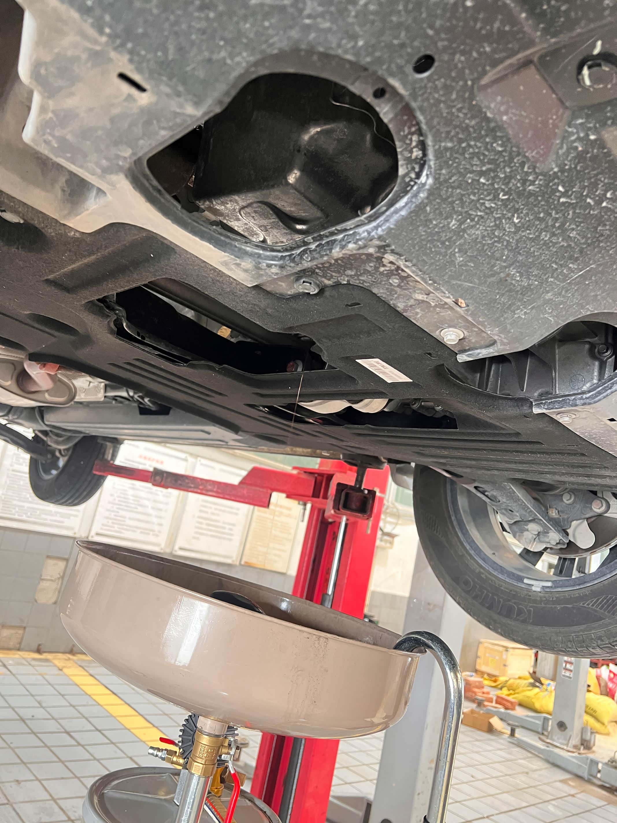 保养的时候忍不住去车间瞅了瞅。师傅正麻利地换机油,我特意瞄了眼底盘——半年跑了不少烂路,居然一点锈迹都没有,焊缝也整齐,心里踏实多了。发动机舱打开看着还挺新,启动的时候声音也平顺,师傅边干活边跟我聊日常保养的小技巧,比如别等油表见底再加油,雨季要检查天窗排水孔,学到不少实用知识。