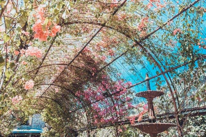 今天咖啡店里的人实在太多了,想找个地方静静的坐下来都不行,只要在里面随意的转了一圈,也算来过了~这个花园式的地方真的让我对咖啡馆也有了新的认识,满满的粉色三角梅攀爬在棚顶上,形成了一个天然的蓬顶,罗马式的喷泉边上坐着三三两两个嬉闹的小孩~这里的一切都那么让人迷恋。