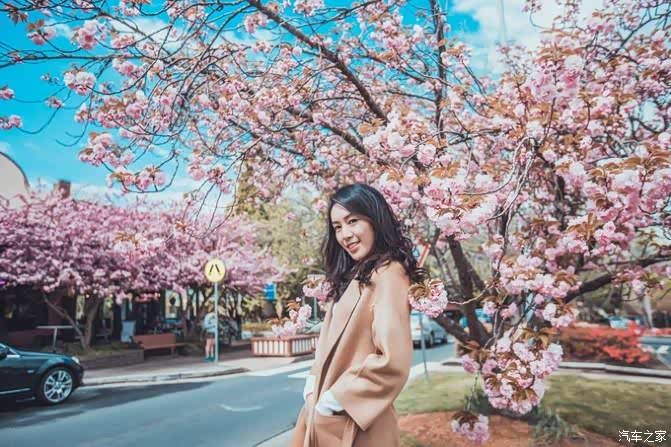 除了紫藤花,还有一树树的樱花正在慢慢绽开,借着粉色的樱花作为前景,画面显得更加温柔起来。