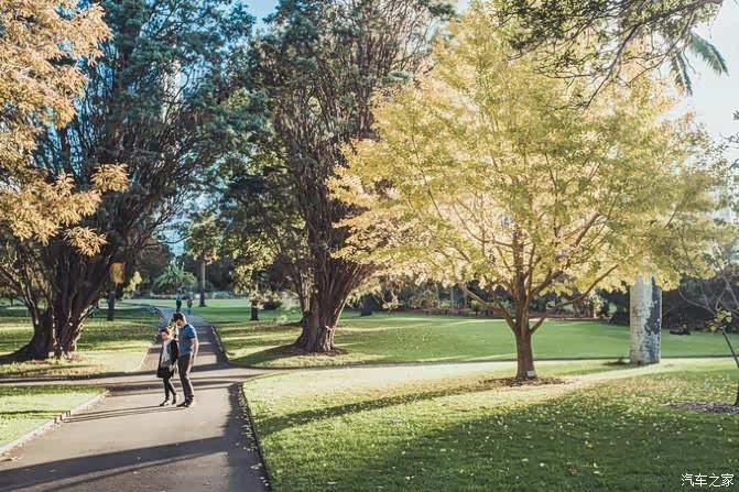 从圣玛丽大教堂的侧面一路林荫小道,走不远就可以看到悉尼皇家植物园的大门了,植物园占地面积很大,所以每天也有很多一家人或者小情侣会来这里散步或者出游,因为走到植物园的尽头,就可以同时看到悉尼最出名的两个地标:悉尼歌剧院和悉尼海港大桥。