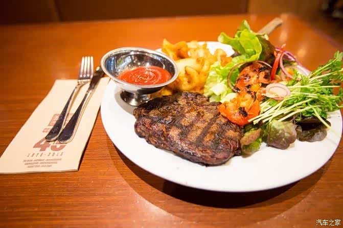 这家餐厅的名字叫做:Pancake on the rocks,在达令港和歌剧院都有分店。歌剧院那边那家比较火爆,晚餐是需要排队的,达令港这家还好。 他家的招牌就是“BEEF RIBS”和Pancake。一份牛排大概30几澳币,上次一个人吃了一份牛排感觉有点多,这次我们两个人点了一份,再要了一份招牌Pancake。 说实话牛排给我的感觉并不像大家评价的那么好吃,可能是因为店员问我们要几分熟,我们不太能接受太生的食物选了八分熟,但是八分熟外面感觉就已经有点焦掉了,有点苦。而且这边的盐放的特别少,所以我就觉得一般般吧,不是很适合我的口味。