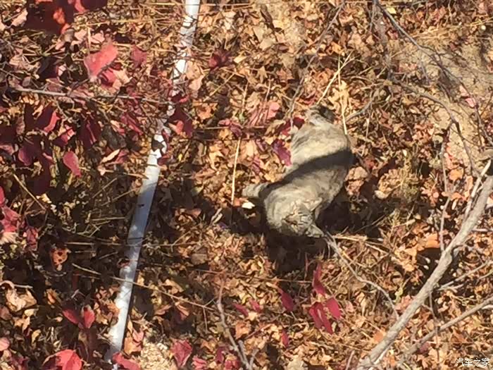 发现一只家猫!就在长城脚下的树林边晒太阳!