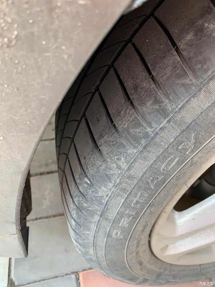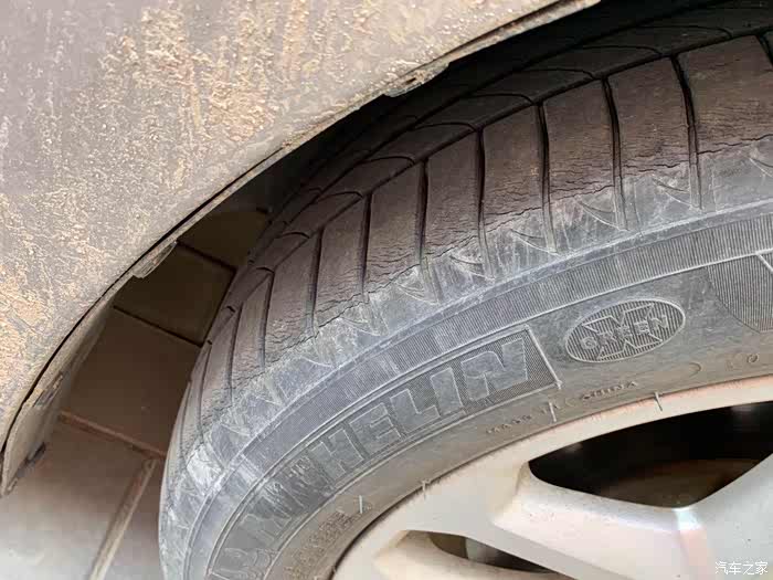 这是行驶4万公里5年的米其林3ST轮胎 左前轮