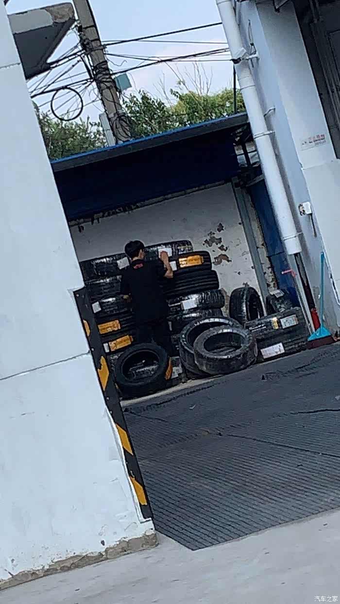 拆卸旧轮胎 并且我要求他们做了四轮顺序标记 因为蒙迪欧是带胎压监测 轮胎弄混了不会自己变更