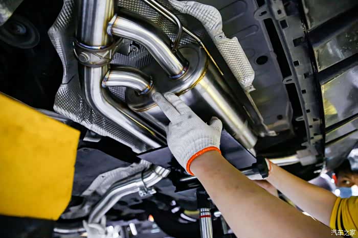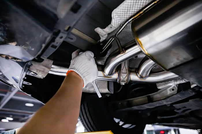 由于原车A200L的排气是只有单边出气的,而且还是隐藏式的排气孔,朝地上出气,改完了A35L的后扩散器和尾喉之后,自然是要让出气也和原厂A35L一样,左右两边都出气,不然冬天就很尴尬了。当然了既然要升级排气,那当然肯定也要有能让人心血澎湃的声浪,毕竟要符合年轻“气盛”的特质。