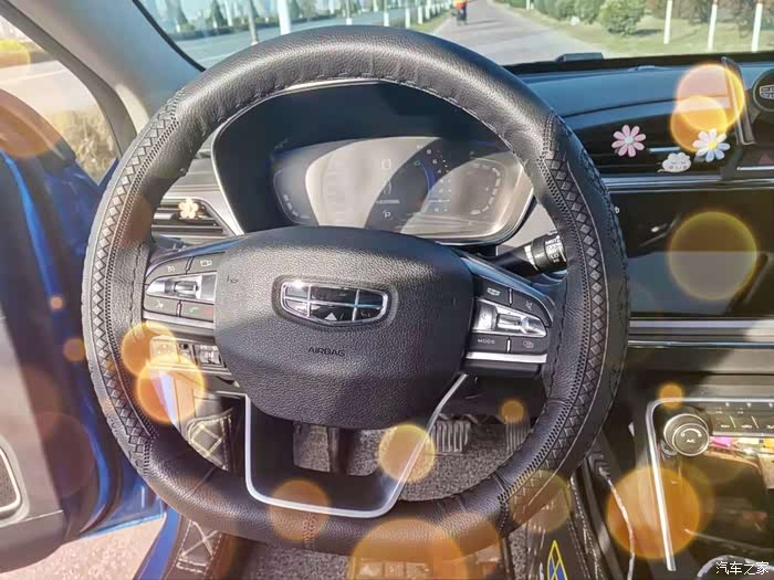 说起选车其实还蛮有幸的,去了好多4S店都没有找到想要的眼前一亮的爱车,于是在网上浏览,看到了吉利汽车,看到了少有的蓝色,好亮,好喜欢,就是一直心里理想的那个颜色,满心喜欢,老婆也喜欢,于是就打电话咨询,可是店里没有现车,又打电话订车,一波好几折,终于等来了自己订的爱车,实车要比网上更好看,更耐看!