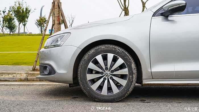 轮毂采用了16寸的拉丝双五幅轮毂,我感觉搭配在这款速腾上还是挺好看的。缺点就是易刮花,且刮花后非常明显,很影响视觉效果