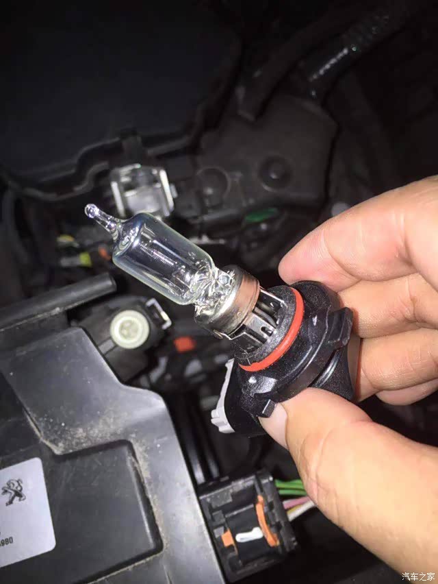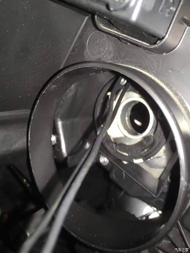 这个是远光,安装倒是蛮简单,打开防尘盖,就看见灯泡的后座了;(图片模糊,打个箭头指示一下)拧一下就能取下来