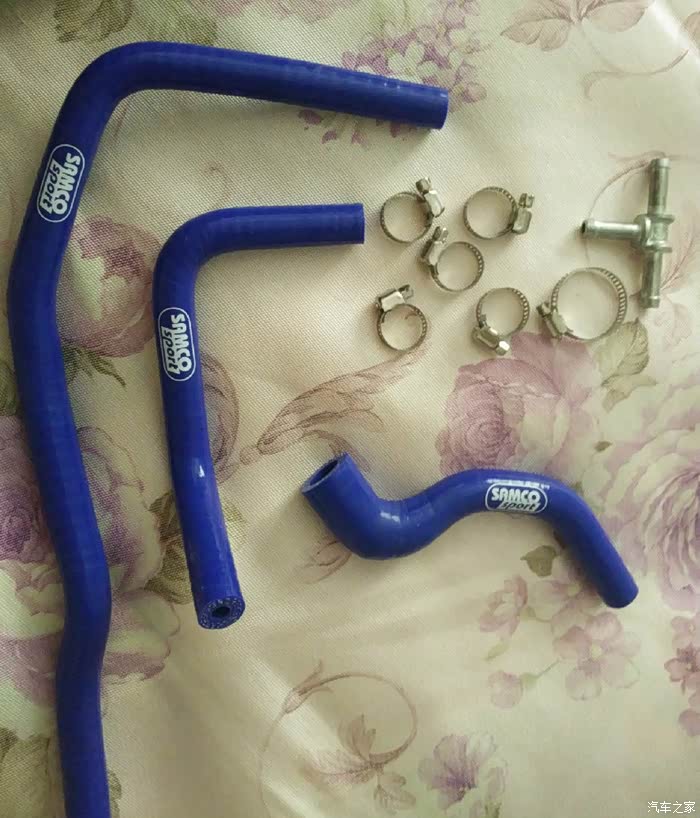 图4(三根耐高温耐高压的橡胶管,一根铝合金三通,若干卡口。各位请注意,三通尽量别买那种铜的,太薄;铝的我也没选,最终选择的铝合金的,稳定性好,管用时间长。)