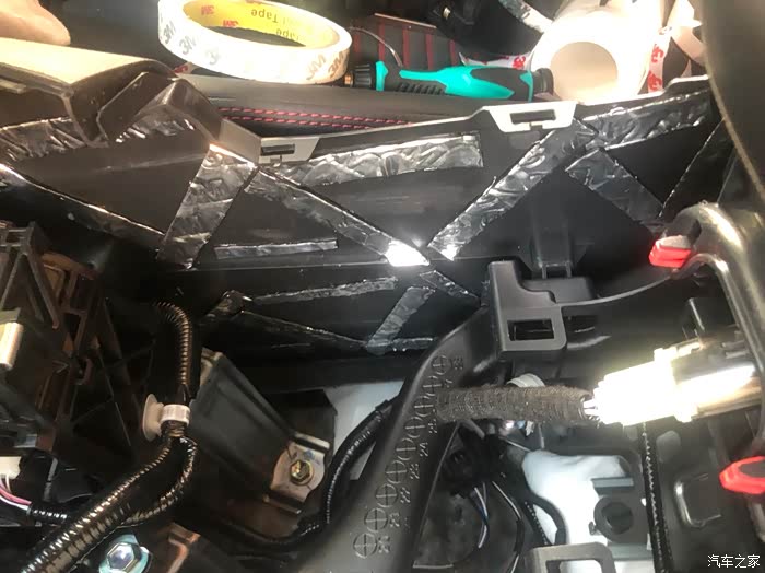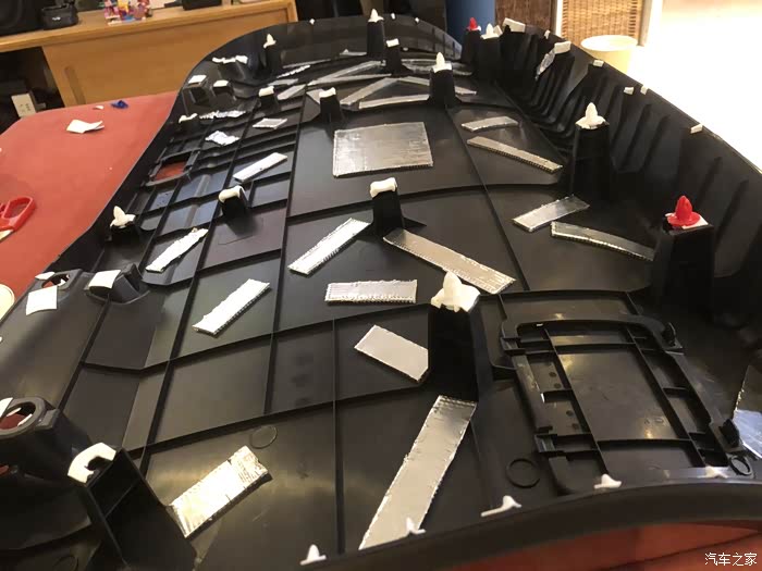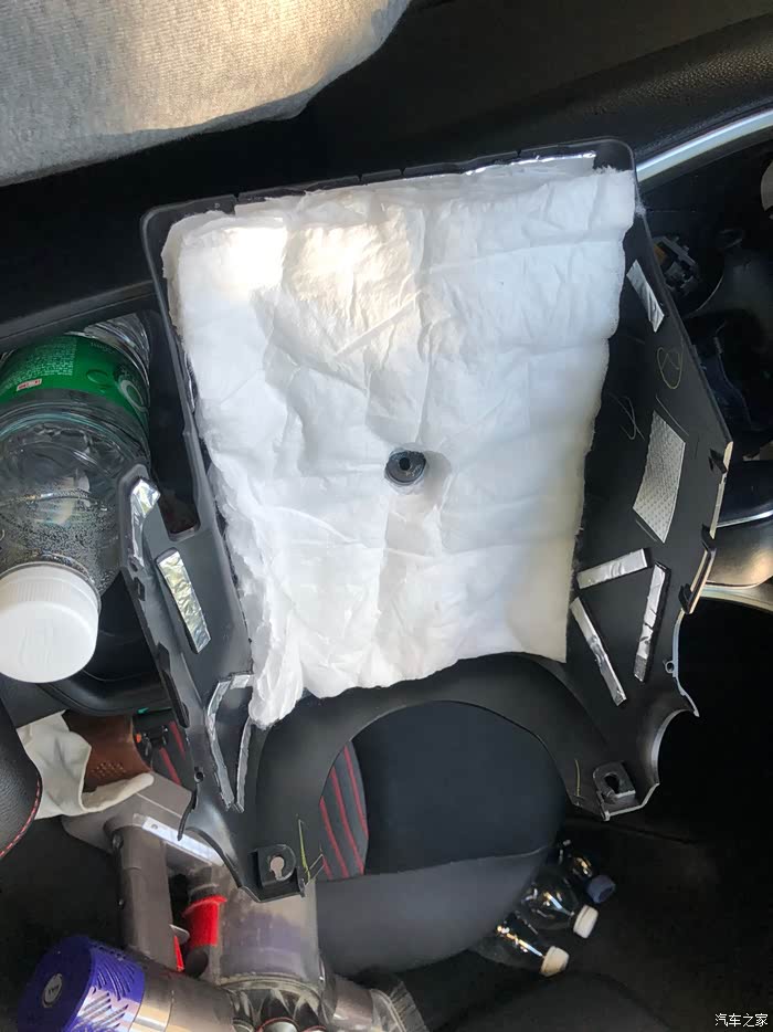 仪表台内部塞吸音棉,顺便四门加尾箱门内部空腔塞吸音棉,我棉卷成了卷,感觉可能影响吸音面积,有机会返工一下;