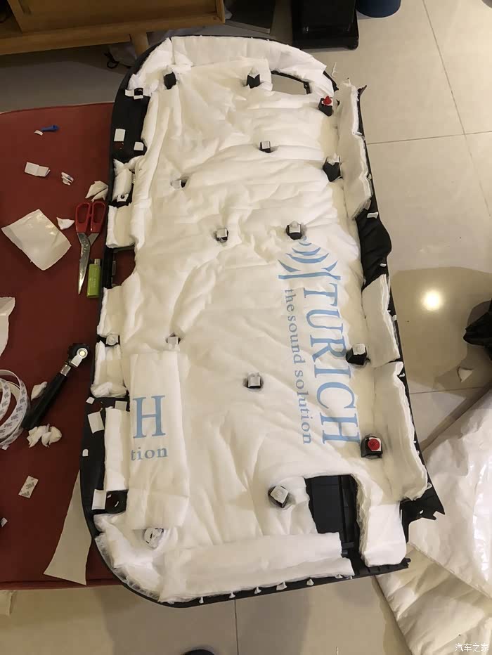 车机后空间较大,塞了三团,不敢搞满怕影响散热,顶棚贴了些止振,有点细碎,敲着不明显