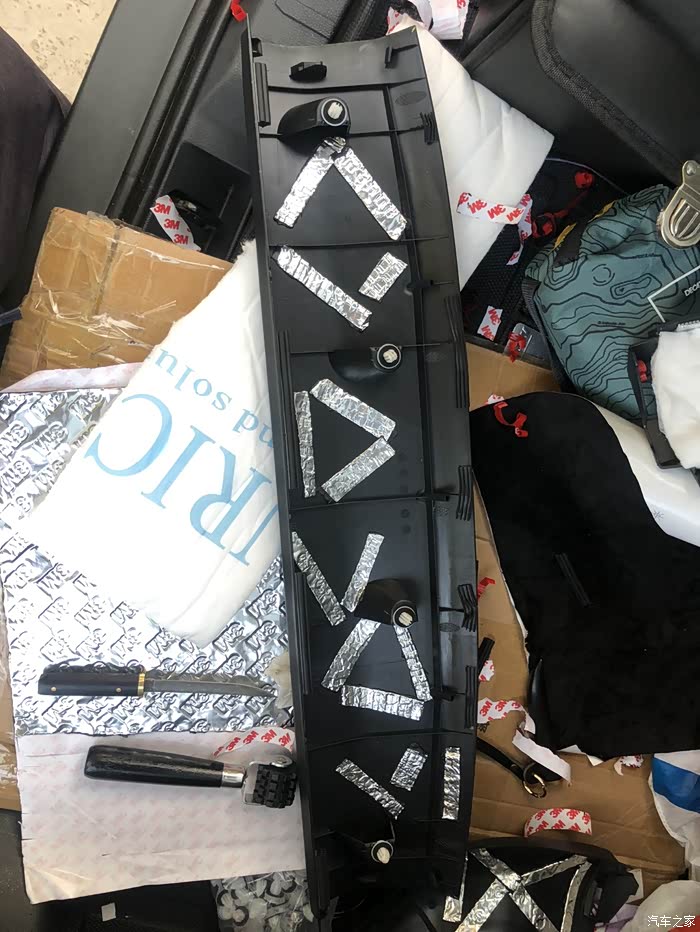 后备箱练手,摸摸门道,发现贴边角特别有效止振,不再敲锣打鼓