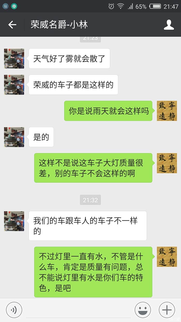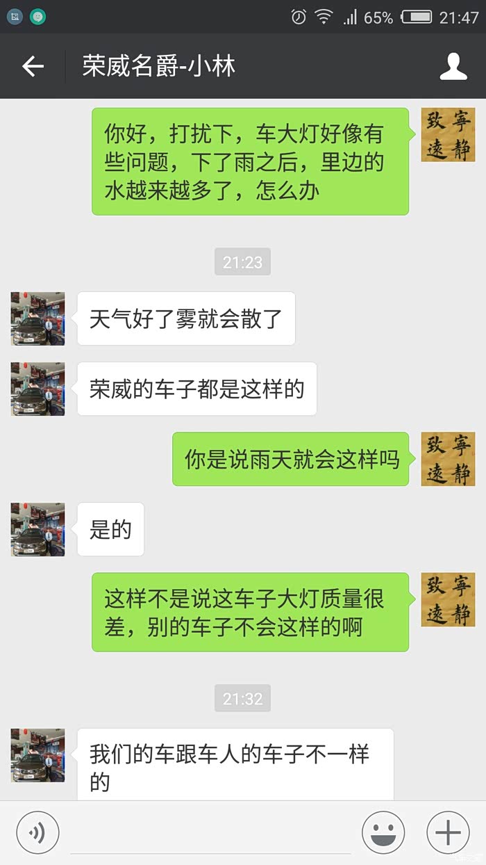 刚买的荣威350,第二天就发现大灯有水,下雨后更多些,十几天了,不见好。问4s店,居然说荣威的车跟别的车不一样,都这样。多无耻的回答,照这样下去,荣威的品牌早晚完蛋!