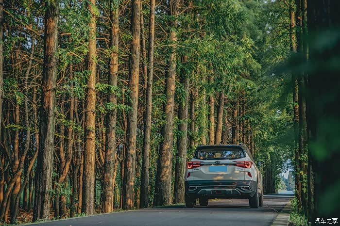 树有点密集,路又有点窄,而且这条路上有很多拐角,傲跑的方向操控感在这个地方就体现出来了,左右转弯时,操作很灵敏,轮胎的抓地也不错,我坐在车内开车时也没有担心害怕的感觉。