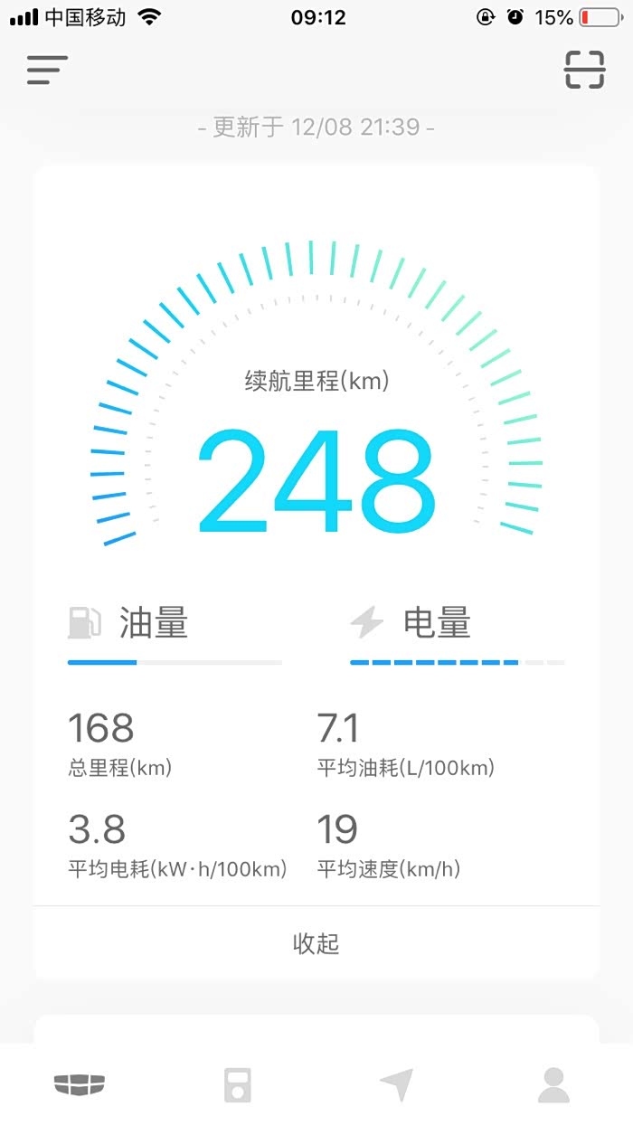 12月6号提车 开了几天感觉相当不错 就是感觉有点费电 不知道是不是天气冷的原因 4s出来加了200油 前天充了一次电 目前168公里 有一个问题 下地下车库的时候下坡不回收能量这是什么原因 L3档