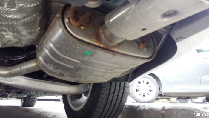 硬币掉车下,检钱时发现车底排气管v形的生锈了,我新车一个月啊。顺便看看旁边的一辆迈锐宝,发现也生锈,而且底盘与君威基本一模一样。