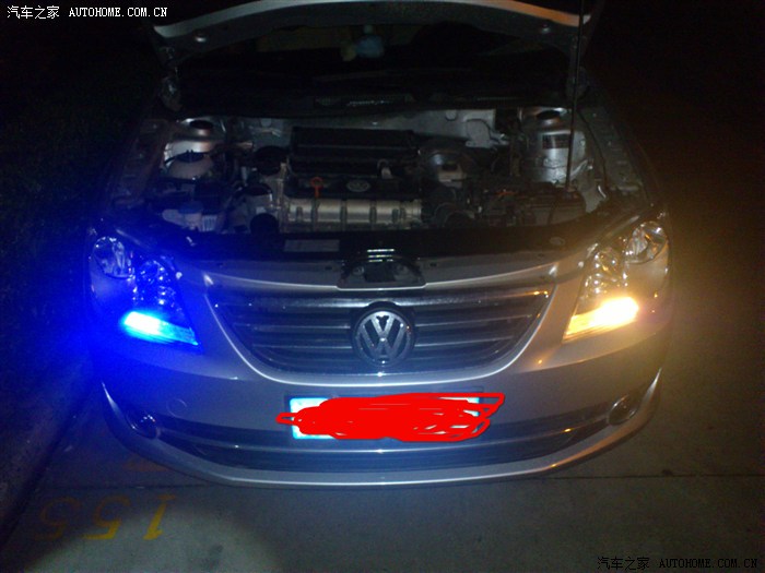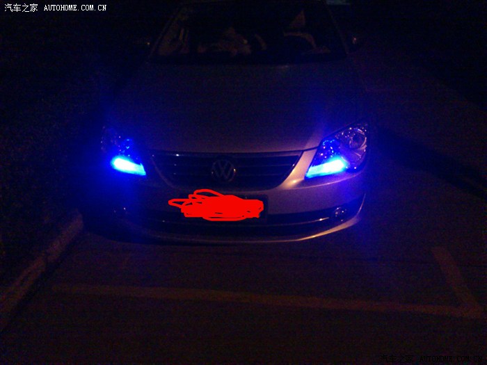 然后是对比图,拍对比图的时候已经换上蓝色示宽灯了,由于近光灯太亮,盖住了蓝色。。。