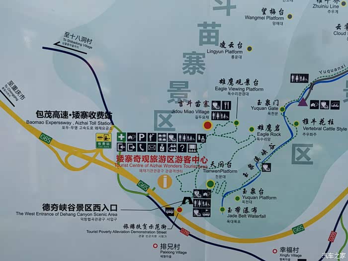 矮寨大桥附近停车场爆满,车子停在公路边的。矮寨收费站出来没多远就是游客中心,晚上天黑前赶到德夯苗寨去住宿,晚上也要收门票,全价票80,由保安代收,并且签了一份景区免责协议书。