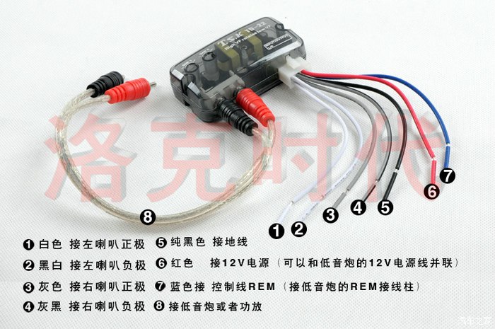 蓝色线连接到功放或者低音炮上的REM控制线