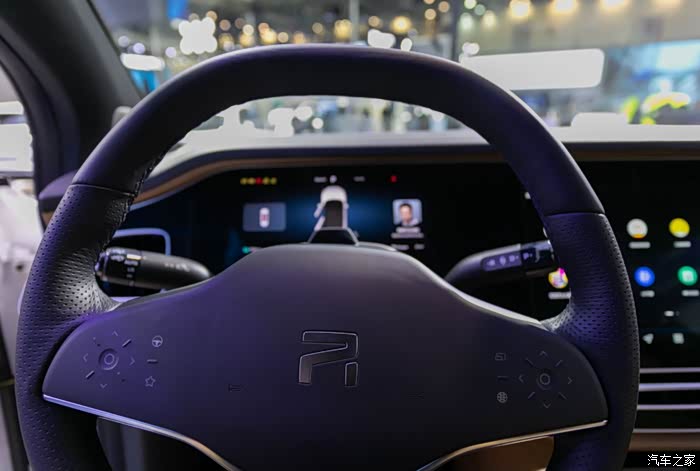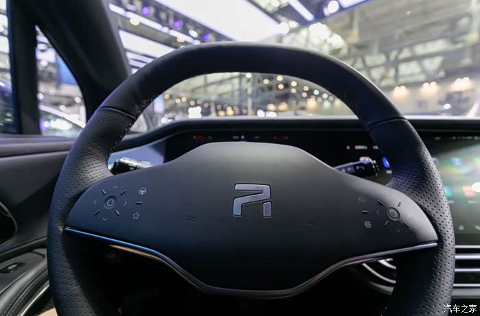 接下来就是看内饰了,不得不说现在智能电动车是真的牛啊,进入驾驶首先看到的就是R7独特的方向盘,整体的方向盘抛去了传统的实体按键换上了触控式按钮设计。在触控式按键中特意在功能键之间设置了凸出的触点,将每个功能键做好分隔,可以提高驾驶员盲操的正确率。