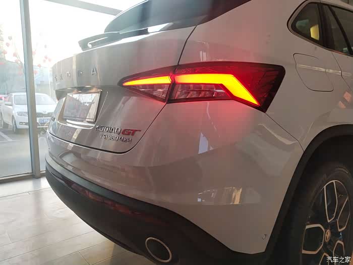 来到车尾,新车采用了样式新颖独特的水晶切割风格尾灯,与下方黑色尾唇以及双边单出排气相搭配,突显了个性、运动的特质。其尾标采用全英文的样式,尾门右下角贴上了表明身份的红色GT徽章。