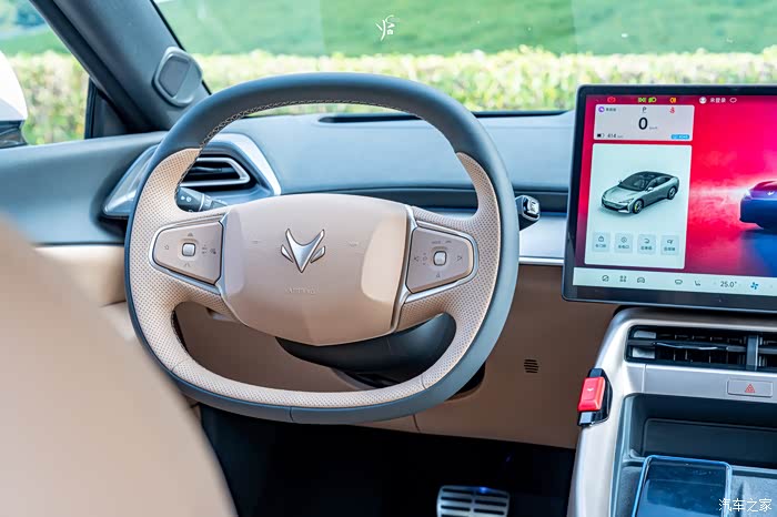 车子搭载了双幅式多功能方向盘,并且还有一个15.6英寸的中控大屏。