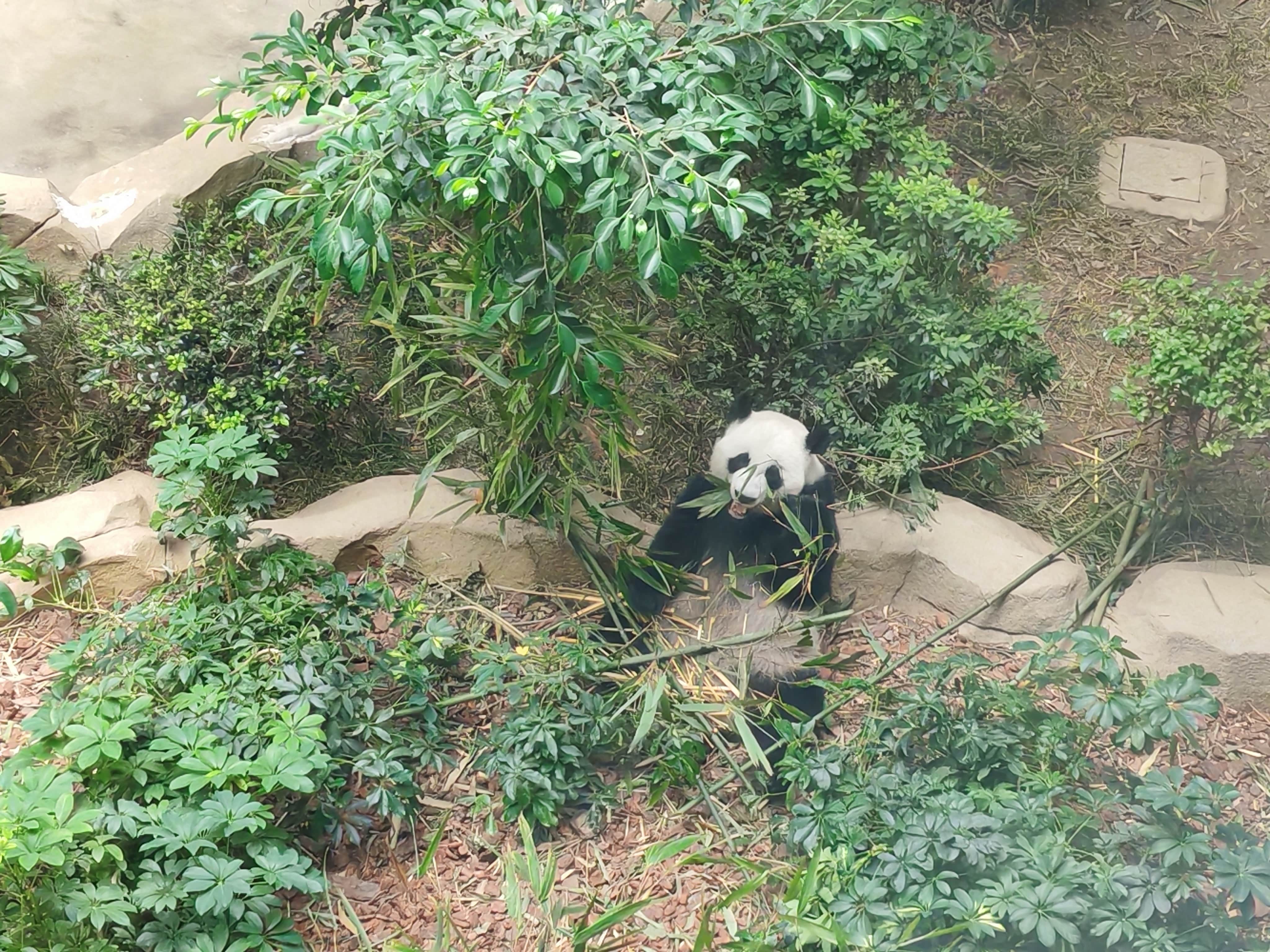 第二天一早,来到有名的熊猫基地里的熊猫产房,来看看这些可爱的小伙伴们,这两只慵懒的睡着了,但是熊猫妈妈正在努力干饭,吃的饱饱的。