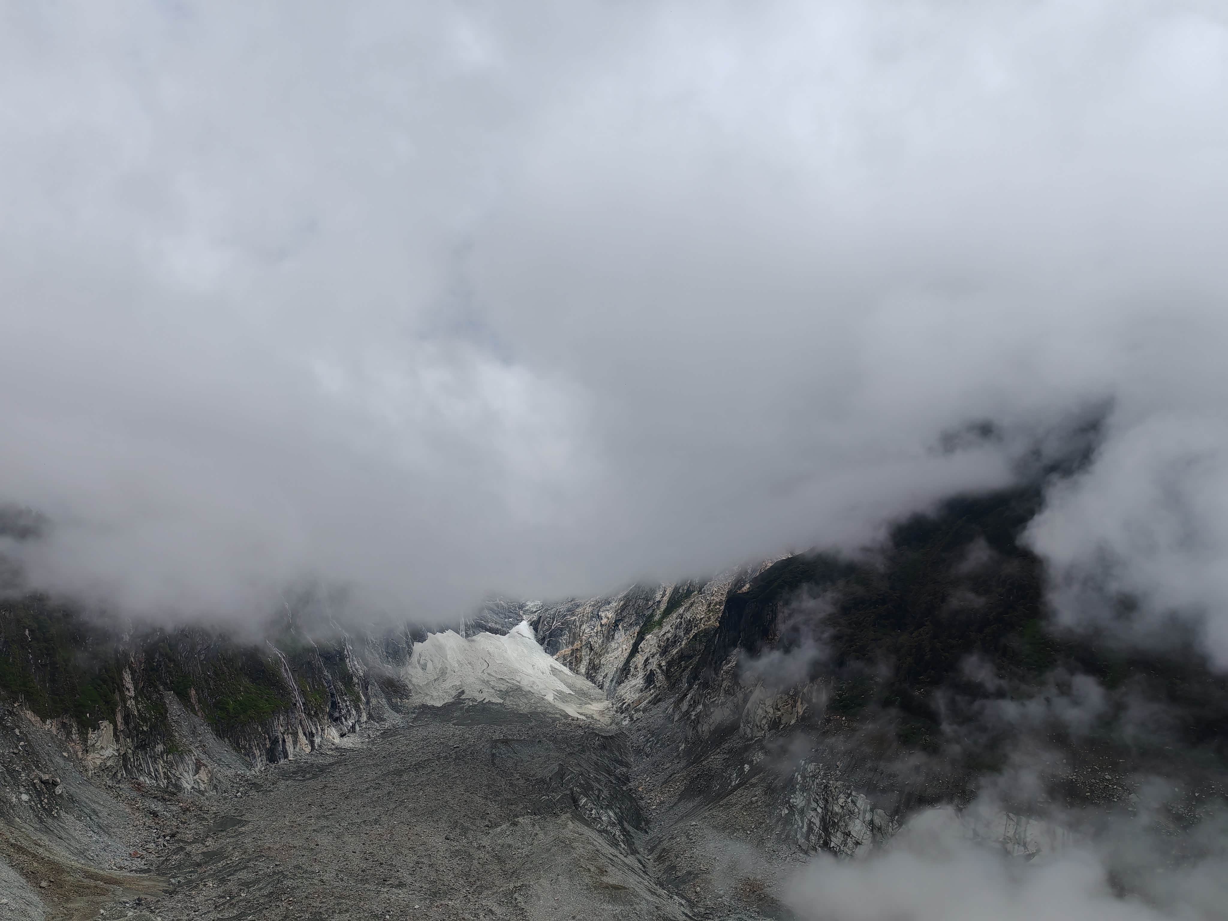 第三天上午,继续前行深入海螺沟,冰川的寒气扑面而来。景交车、索道一路上行,在远处看到贡嘎山。冰川下沿融化的冰川水正在流淌,山顶的冰峰屹立不倒。那些在记忆里定格成永恒的瞬间。