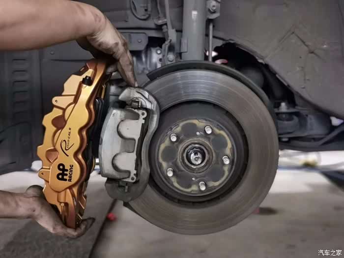 这里要注意的是,英国AP Racing,也有直接简称AP的是现在市面上主流的多活塞刹车系统改装品牌,在国际上也数得上号,性能稳定可靠,安全有保障。