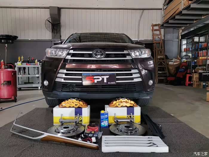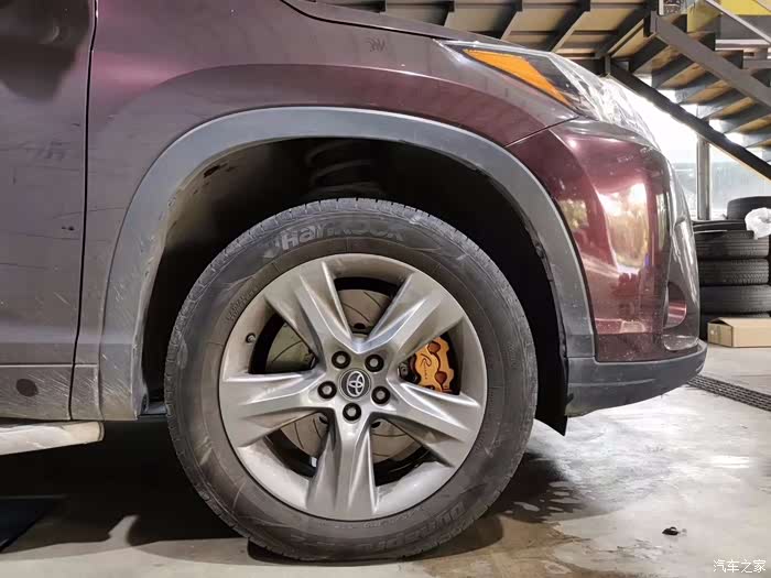 从图片中看得出来,这台汉兰达改的是刹车、内饰灯。颜色么,是不是很壕气!