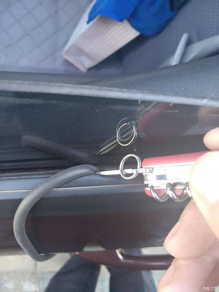 从前门玻璃没入车门的那侧开始,用工具把密封管塞入。注意密封管不是很结实,用力大的话会把它刺破。然后慢慢的用工具一点一点塞进去。