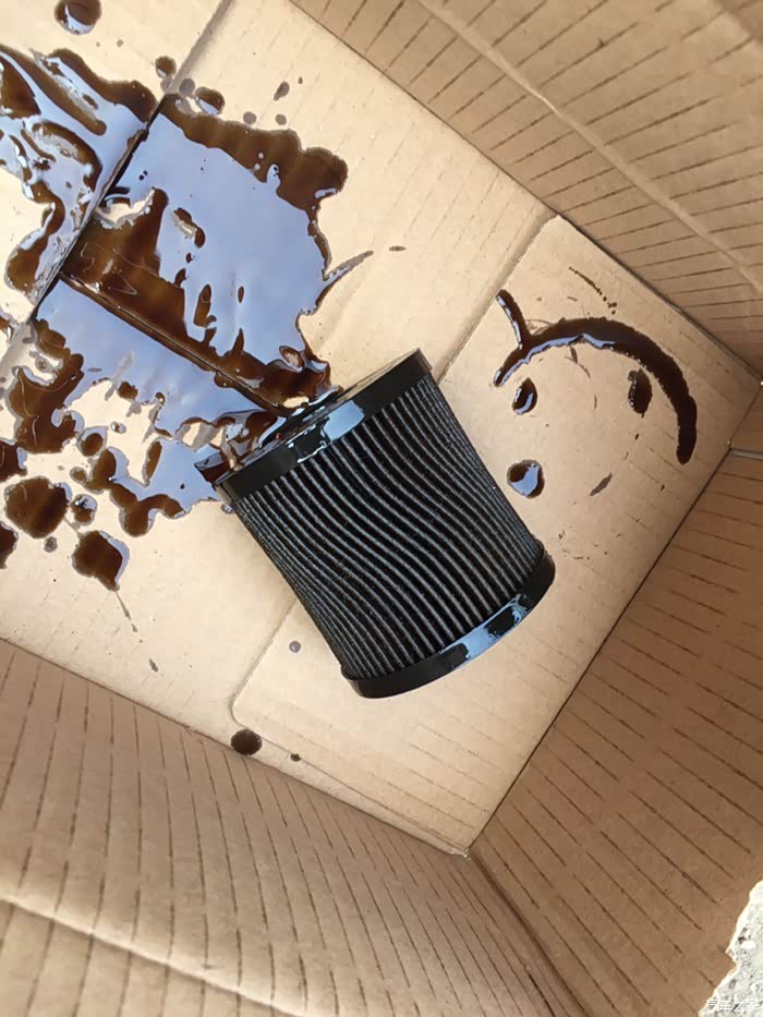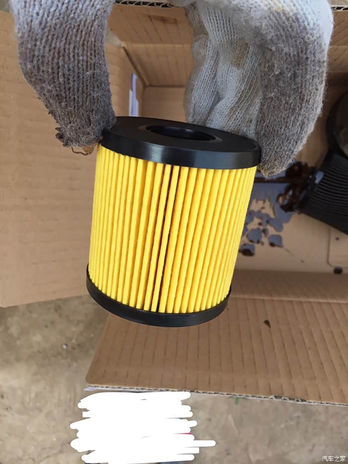 利用机油往下流的时间,开始拆机滤,在拆机滤前同样做一个标记,我用我手上的脓包告诉你拆机滤时一定要带手套,一定!因为发动机外壳是铝的,非常热!因为刚开始机滤已经松了,很轻松的就把机滤卸下来。拆机滤前在机滤下方垫上旧毛巾或者纸片防止机滤里的油流到发动机上,但是我拆的时候机滤一松不要完全拿下机滤,暂时停一下,让机滤里的油流下去,发现油底壳又出来一些油,没有撒到外边,自我感觉做的很好。这是拆下来的机滤